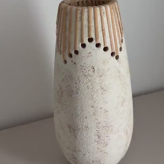 Boho Ceramic Vase - White Rustic Decor for Home & Dried Flowers