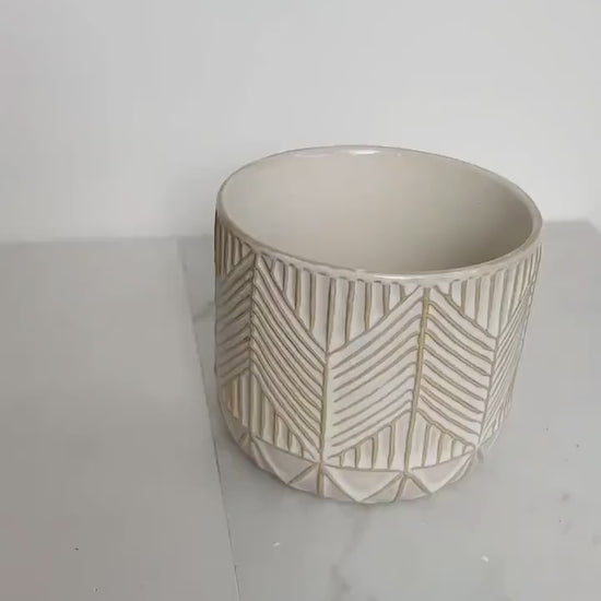 Boho Chevron Pottery - Neutral Ivory Modern Planter for Indoor Plants