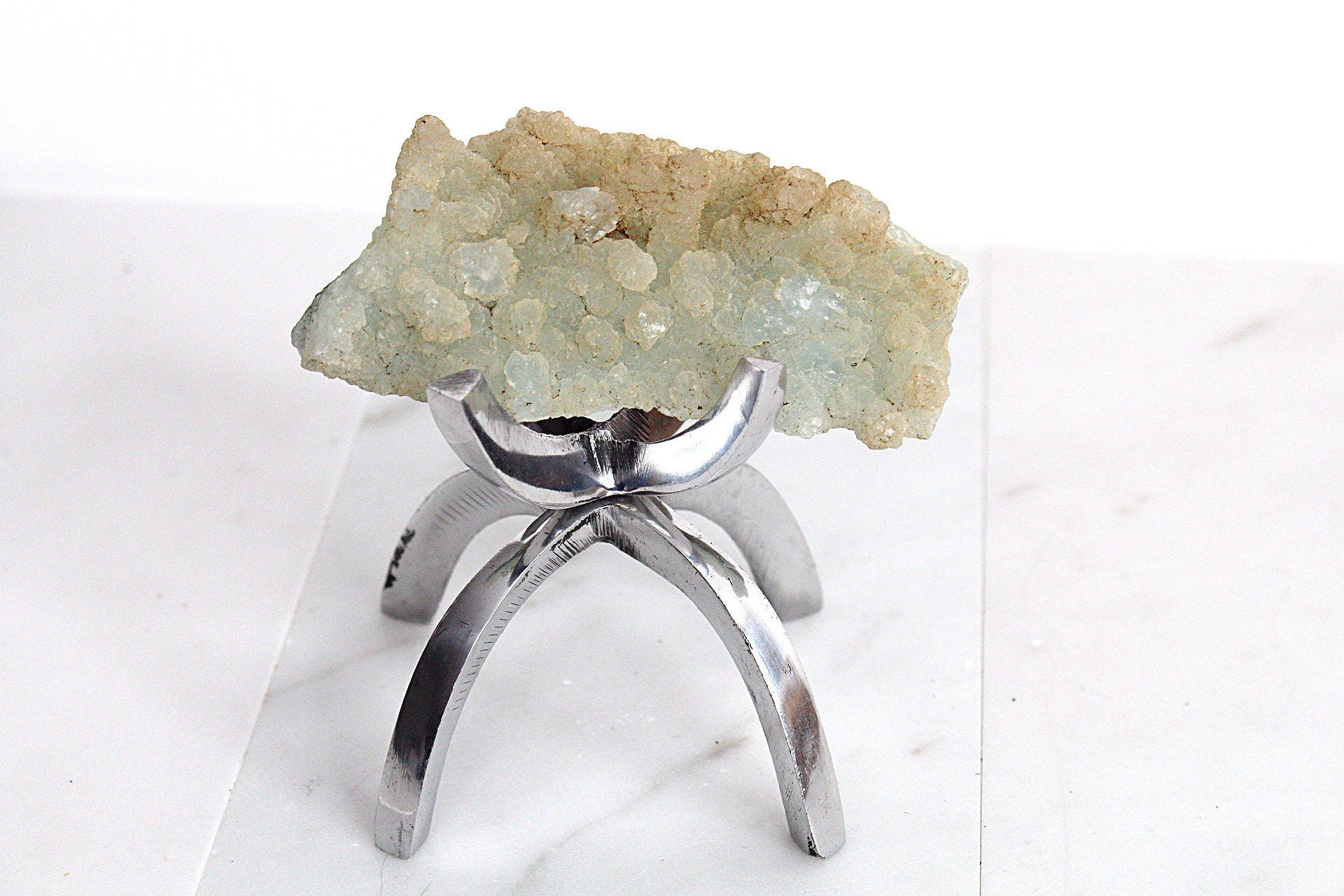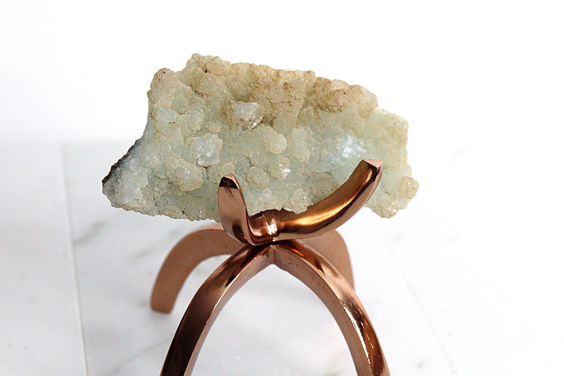 Stand Options: brass, rose gold colored or silver colored aluminum display stand that is 2.25 inches wide and 2.5 inches tall. The stand adds a little bit of modern and add depth to your collection of crystals by changing up the height.