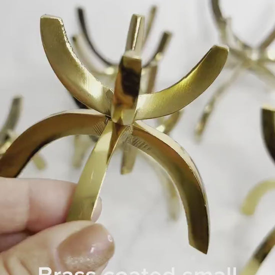 You will receive bulk 5 or 10 pieces of our modern brass (or brass-coated) crystal stands to display your crystal, minerals, rocks and spheres. This stand is claw shaped and adds a modern stylish touch to your home, wedding or party decor. The brass claw will add wonderful texture, depth, and interest to your shelf and put your crystal on an airy and minimal pedestal.
