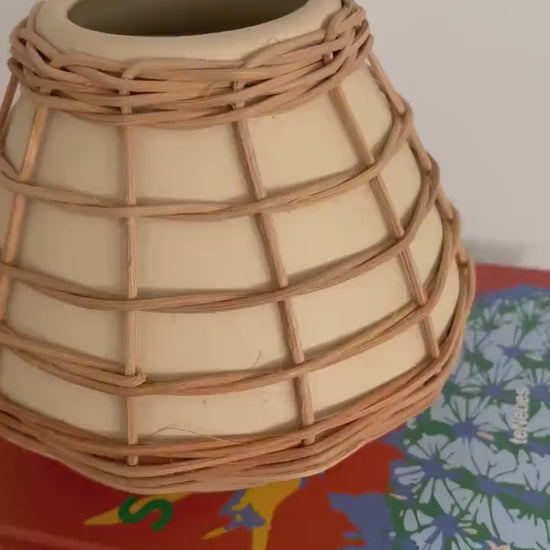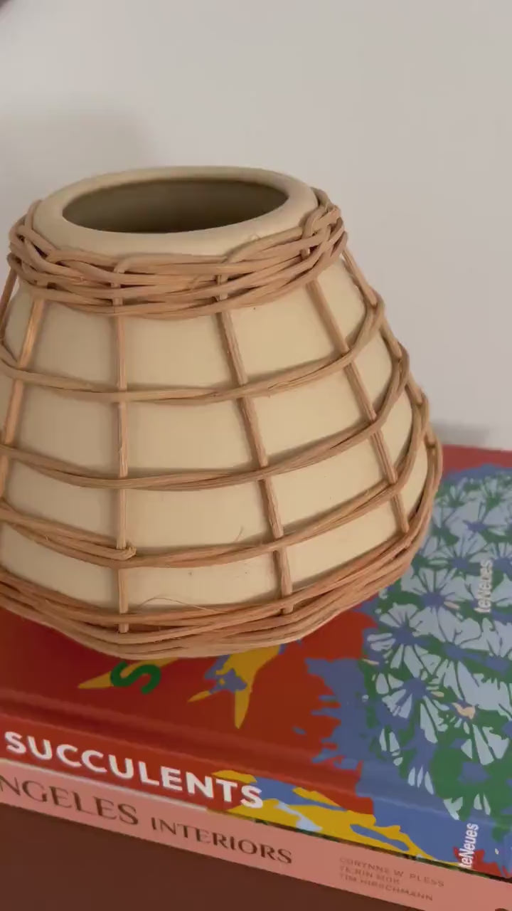 Elevate your home decor with this stunning ceramic vase featuring a rattan boho-inspired design, perfect as a woven container or neutral textured planter. This organic modern accent piece showcases a beautiful wicker overlay, making it an ideal small vase for shelf decor that adds a touch of natural elegance to any space.
