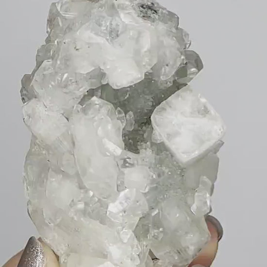 Apophyllite is the stone of peace and spirituality. It’s clarity resonates like the toll of a bell on a crisp winter’s night. Looking like “frozen water“, apophyllite is a very useful stone for meditation, as it helps us to clear away sabotaging thoughts. It calms apprehension by overcoming stress, worry and anxiety as it releases suppressed emotions. This crystal relieves mental blockage along with negative thought patterns, helping uncertainties to be tolerated. A famous stone for connecting with angels, attuning to our higher spiritual selves and assisting in astral travel.