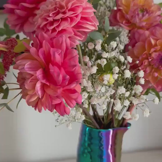Add a joyful statement to your space with this Iridescent Ceramic Vase, designed to bring color, shine, and personality into your home. Featuring a luminous rainbow finish with subtle gold tones, this sculptural vase is perfect for maximalist, eclectic, and organic interiors.
