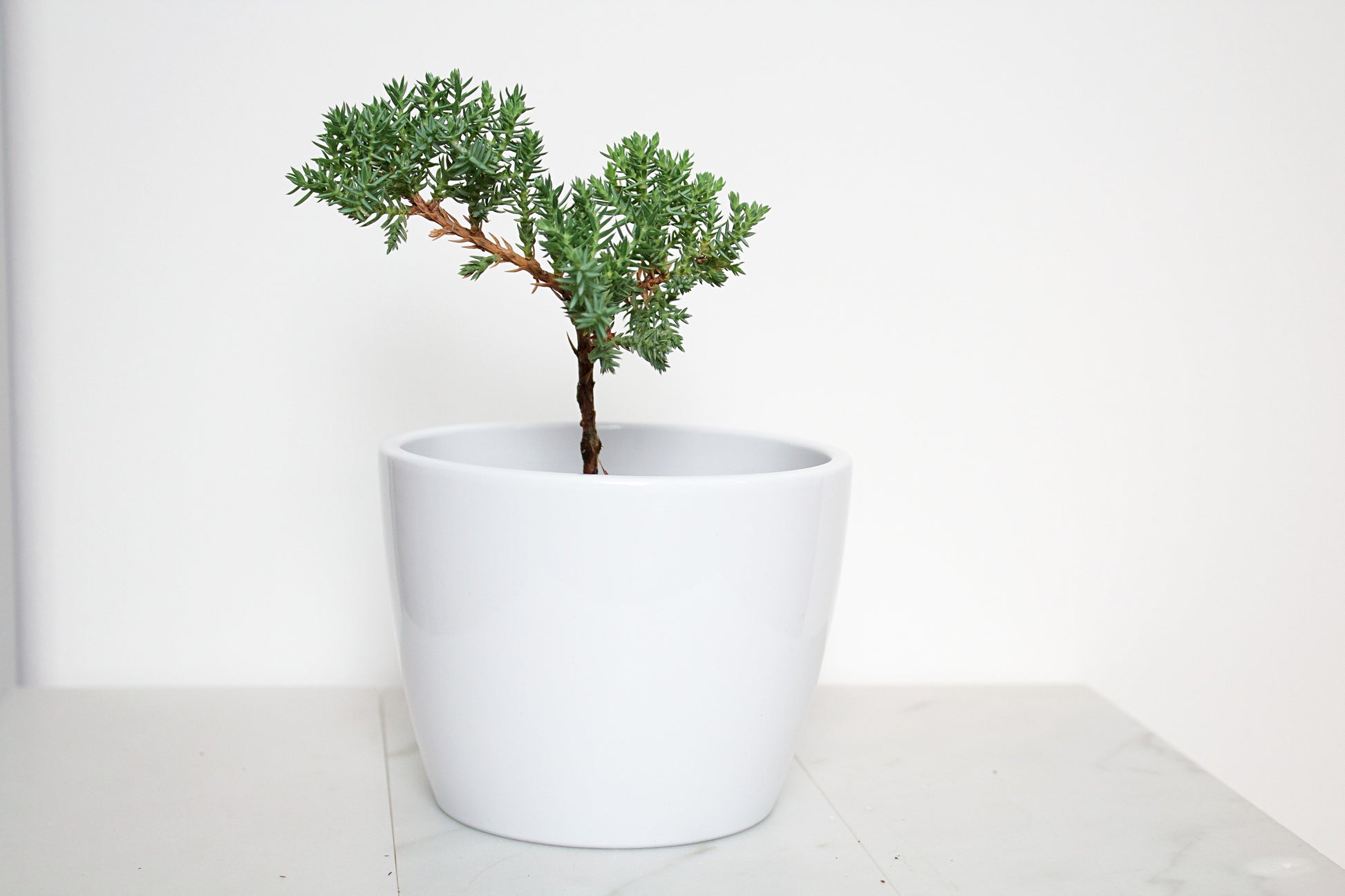 Simple and clean. This light weight white pot blends easily with any plant collection. Has a shiny glossy finish.