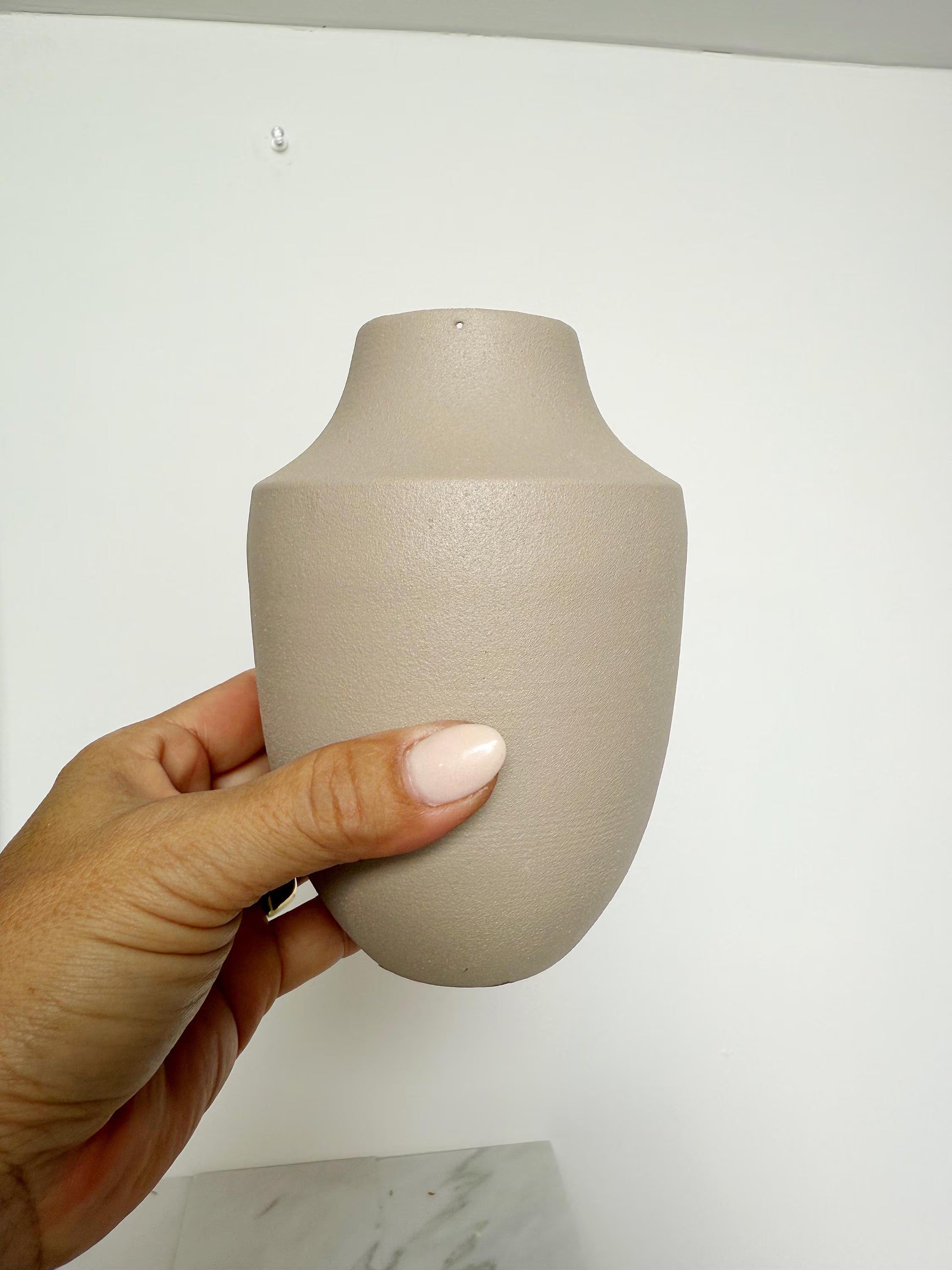 Modern Beige Metal Vase – Minimalist Round Matte Finish Table Decor