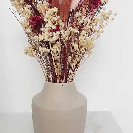 Round body with a narrow neck, perfect for dried or fresh flowers