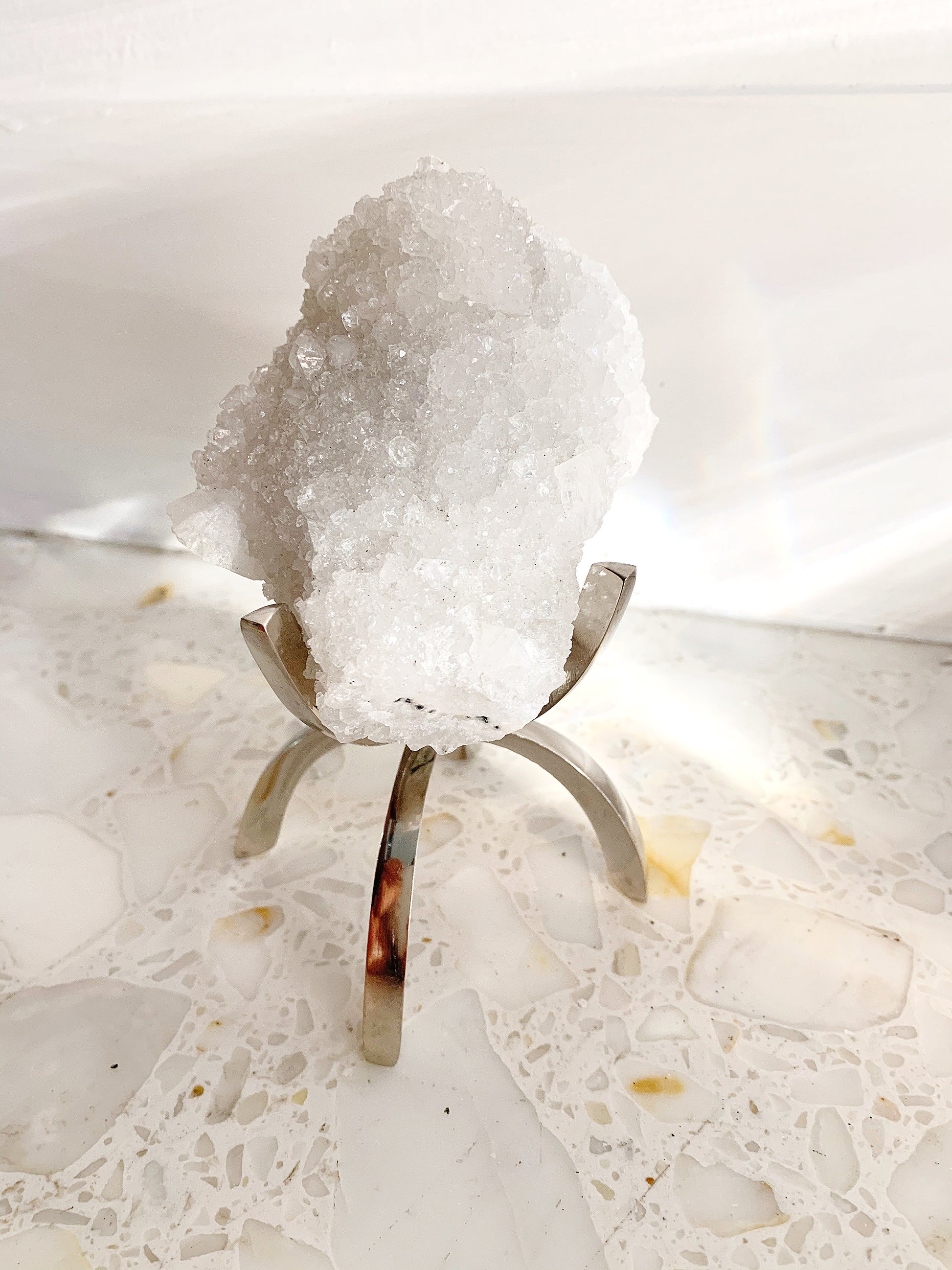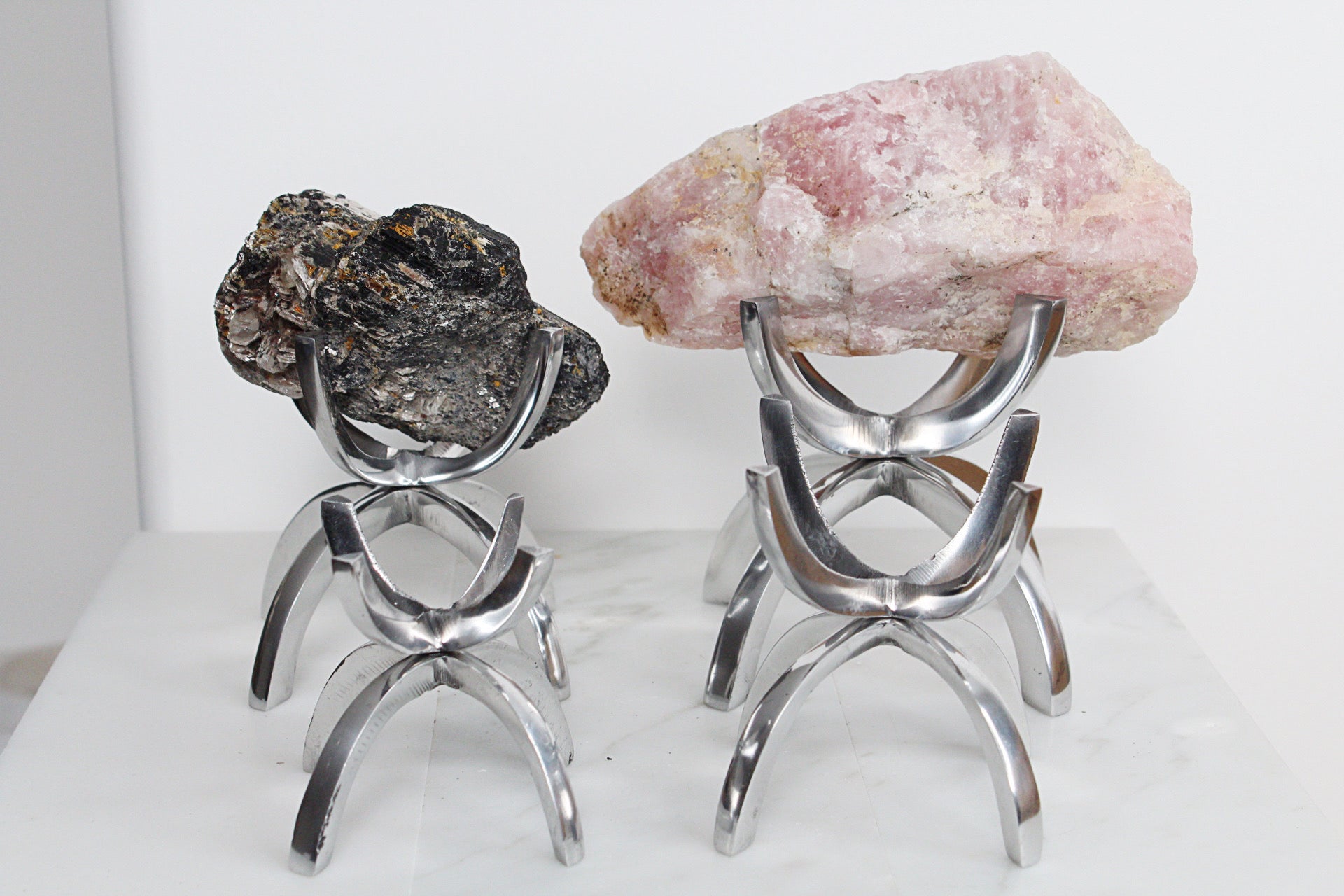 This display stand is a modern and chic way to show off your crystal and mineral collection. The silver aluminum claw will add wonderful texture, depth, and interest to your shelf and put your crystal on an airy and minimal pedestal.