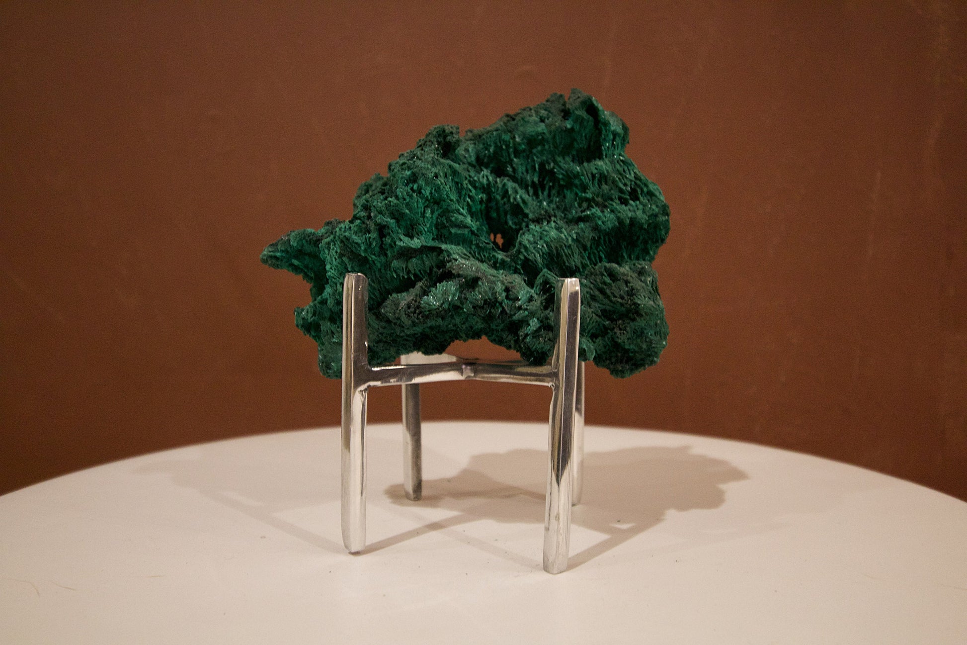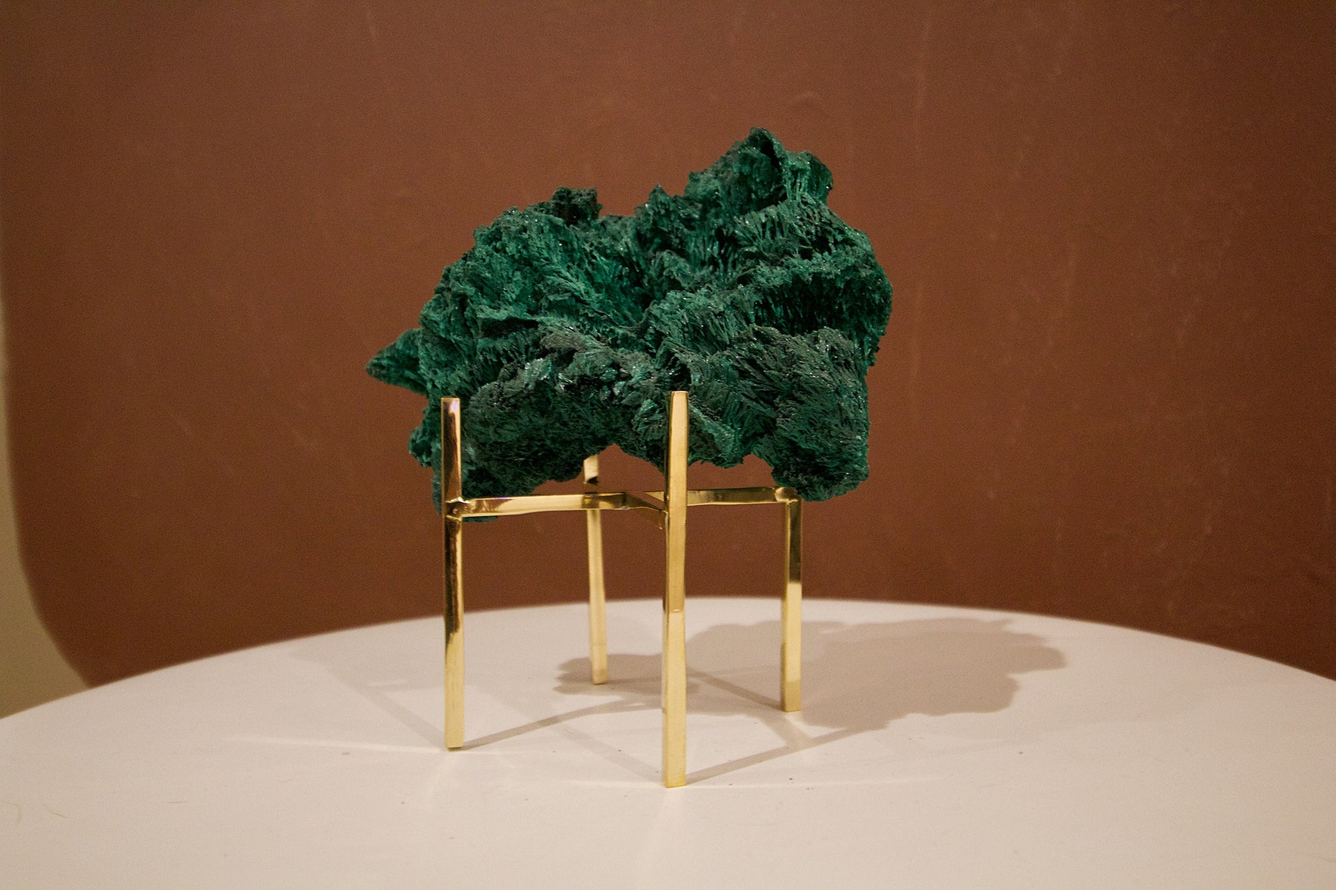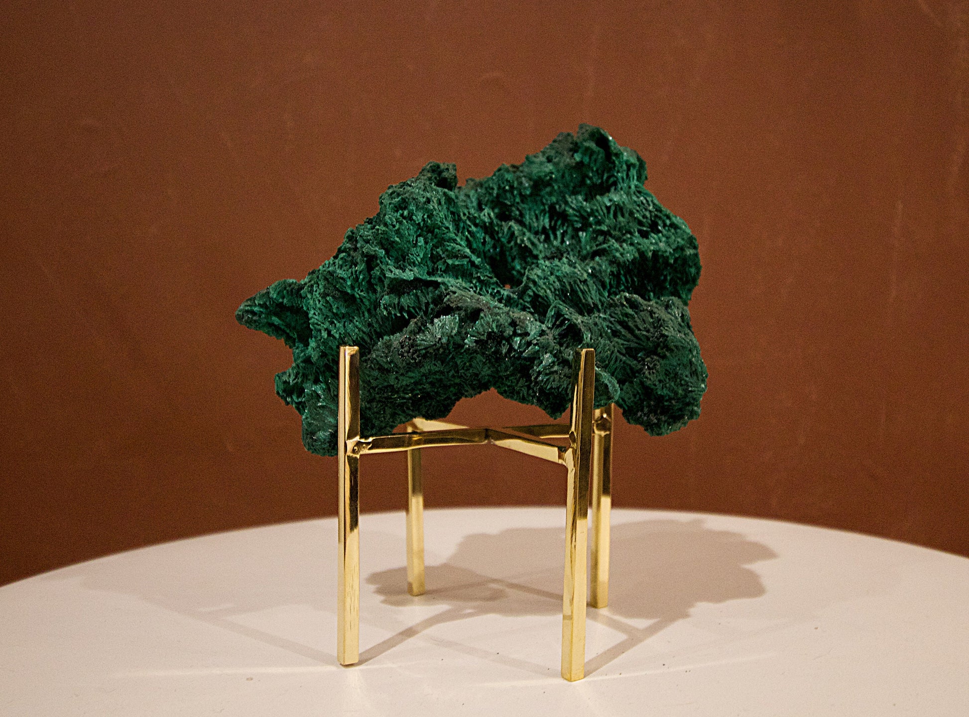 The display stand is made of brass. Please note that this item is handmade (not mass produced by machines), so there are some imperfections on the stand.