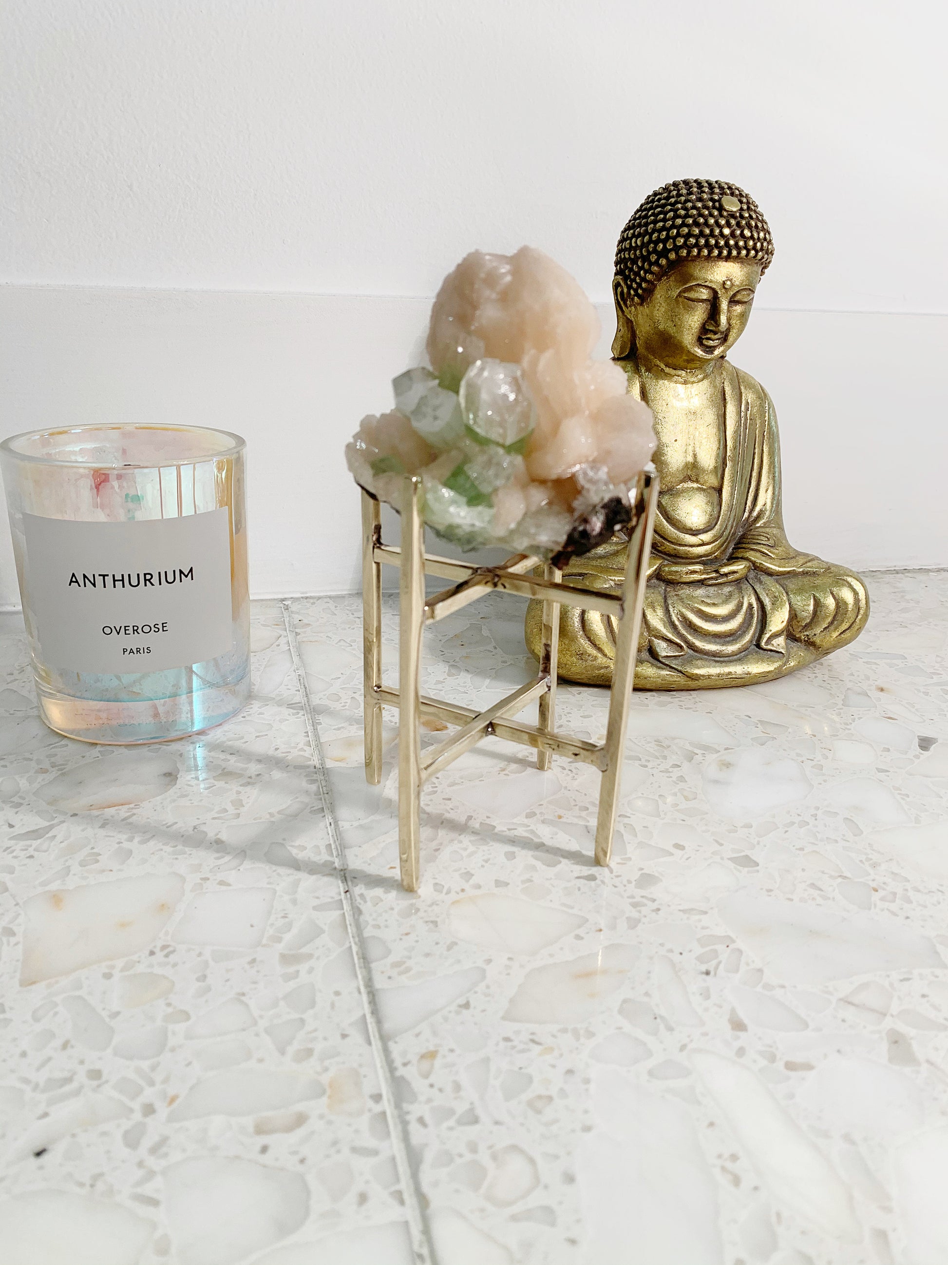 This display stand is a luxurious and modern way to arrange your crystal and mineral collection. The brass tower pedestal will add a chic touch to your display shelf and height to your favorite crystals. It can also be used to air-plants, candles, or other decor items.