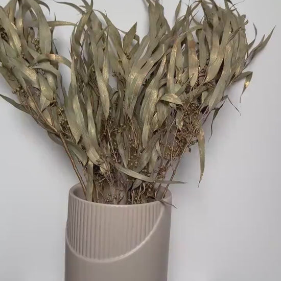 Upgrade: Option to add 6 premium gold-painted eucalyptus stems for instant styling