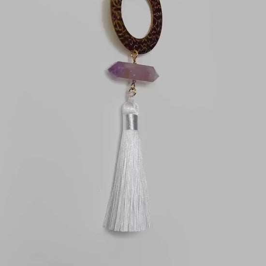 Illuminate your space with the enchanting Natural Gemstone Sun Catcher, a Purple Pink Light Catcher Crystal Brass Moon Wall Hanging Art adorned with Rose Quartz, Amethyst, and a white tassel—a unique crystal decor that adds a touch of sophistication to your home. The harmonious blend of natural gemstones, including Rose Quartz and Amethyst, enhances the elegance of this distinctive wall hanging, creating a stylish and captivating atmosphere.