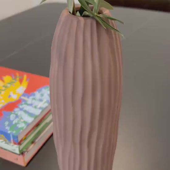Neutral Tall Fluted Purple Vase – Ribbed Texture Floral Arrangement Vessel