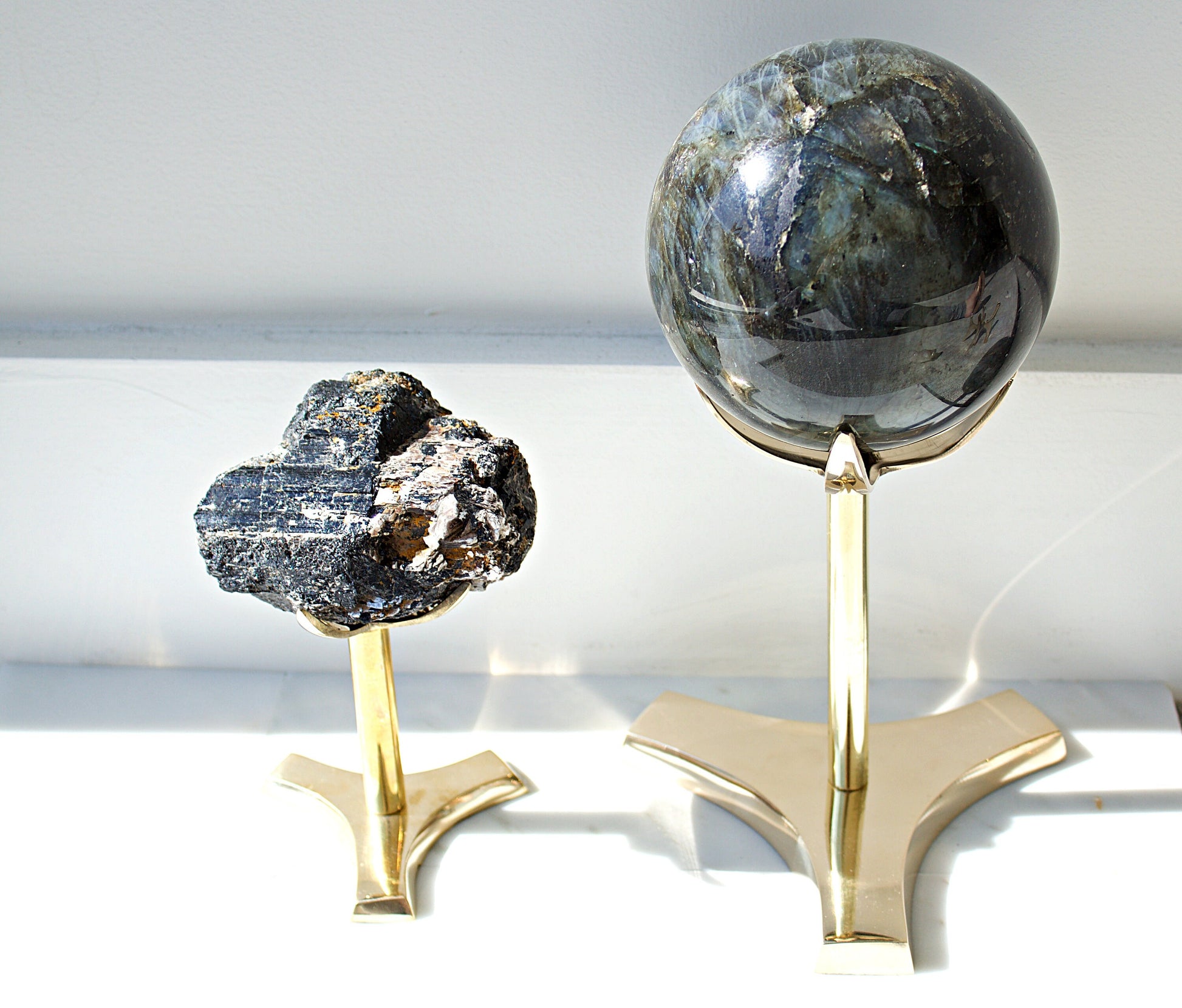 A beautiful and elegant stand to display your small crystal spheres, clusters. Want to add height and dimension to your shelf space? This will give your space that polished professional look for your crystal or geode collection.