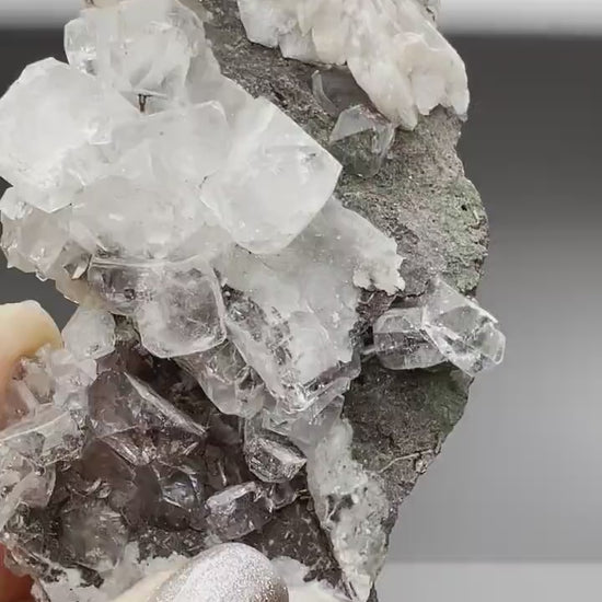 Raw White Apophyllite & Stilbite Quartz on Brass Claw Stand – Boho Crystal Decor