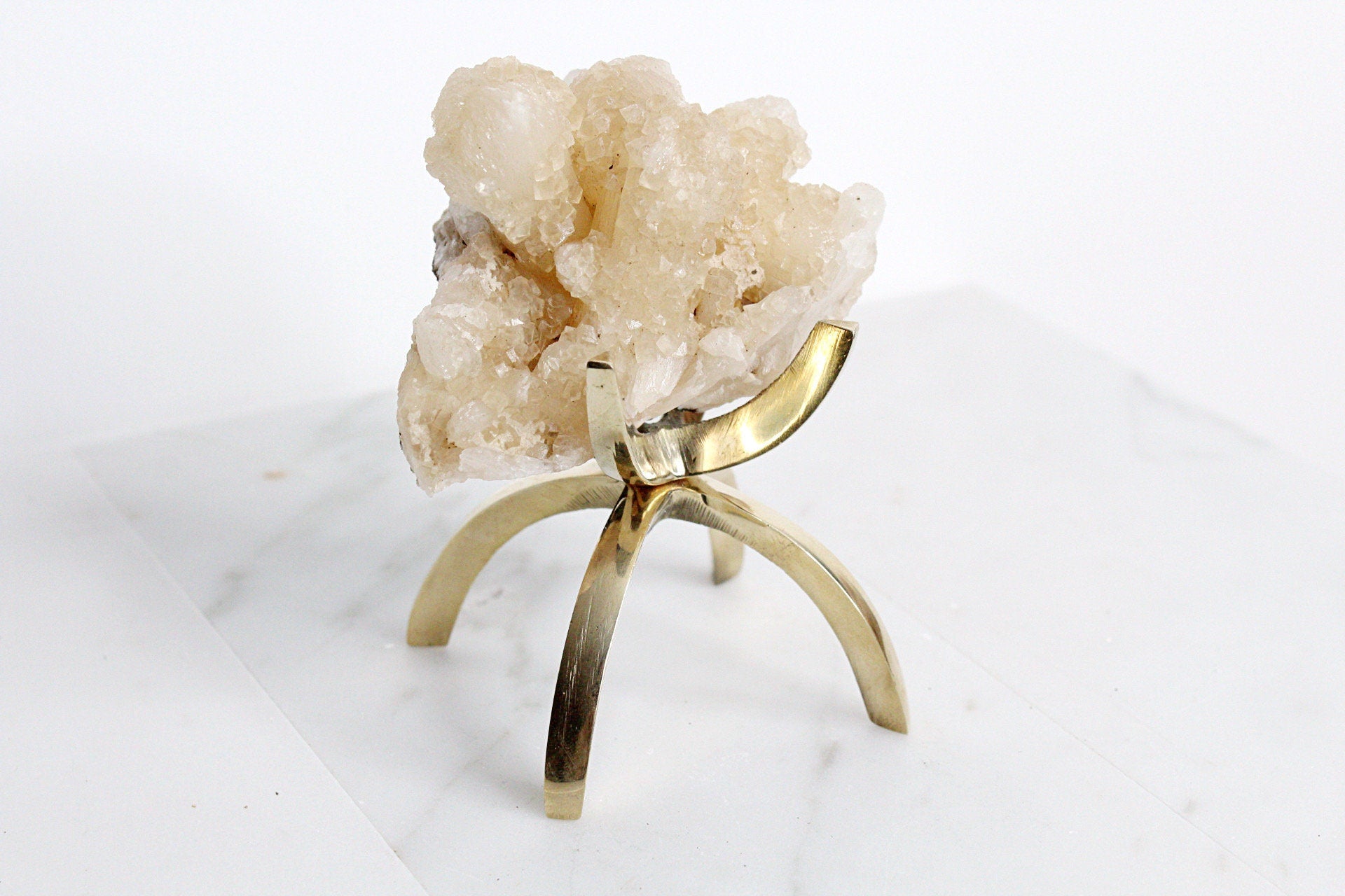 Transform your space with a unique boho decor accent featuring Pink Stilbite Quartz Crystal Mineral elegantly presented on a brass modern claw display stand—an exceptional arrangement that seamlessly incorporates the serene beauty of Stilbite Quartz Crystal Stone into your modern decor. Embrace the harmonious fusion of pink Stilbite, the modern brass claw display stand, and boho aesthetics, creating a captivating atmosphere in your living space.
