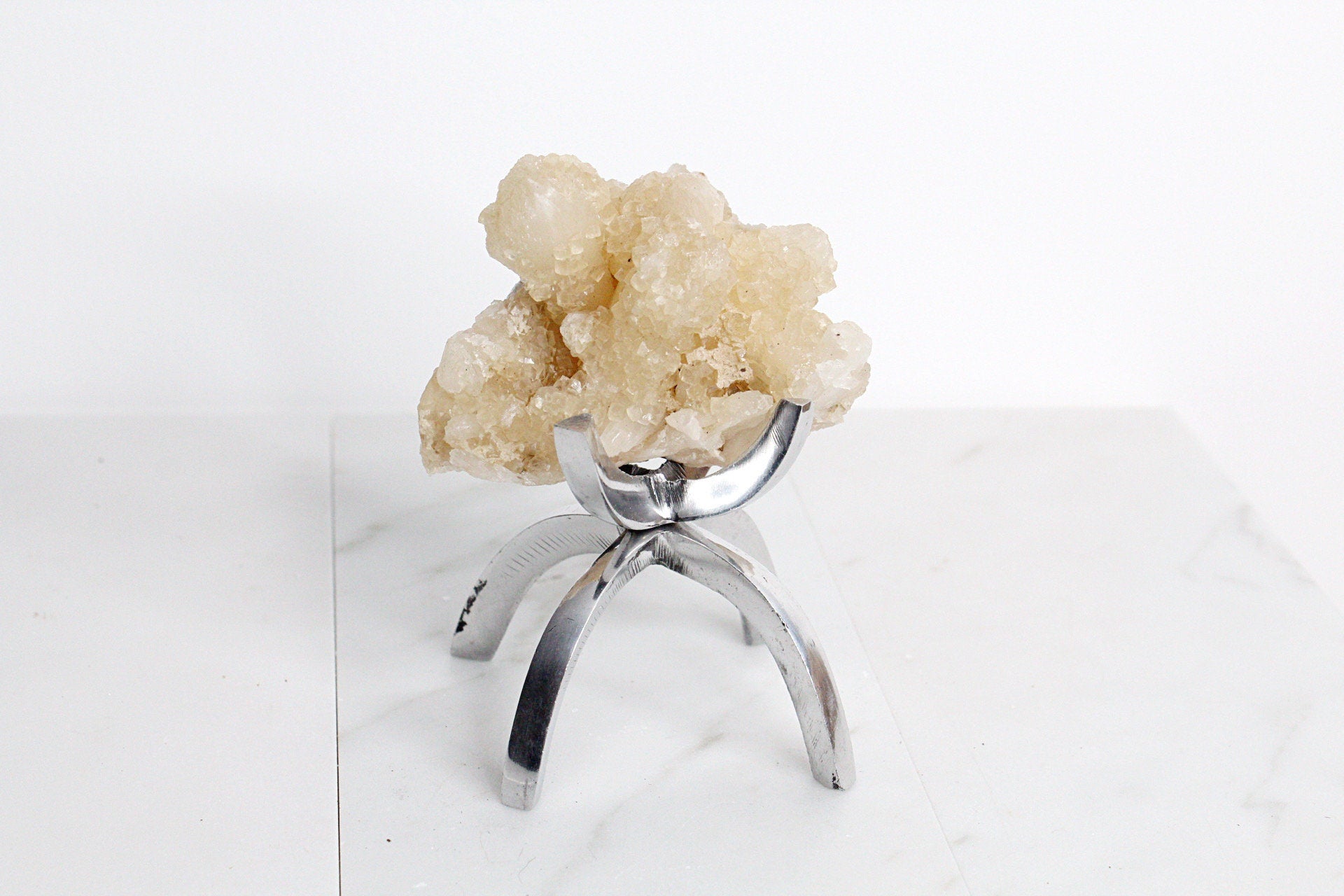 Stand Options: brass, rose gold colored or silver colored aluminum display stand that is 2.25 inches wide and 2.5 inches tall. The stand adds a little bit of modern and add depth to your collection of crystals by changing up the height.