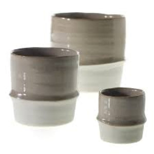This is a wonderful neutral planter that goes with everything. Has a beautiful two-tone color combination of subtle pink and beige. Small will fit a 4 inch pot and Large will fit a 6 inch pot.